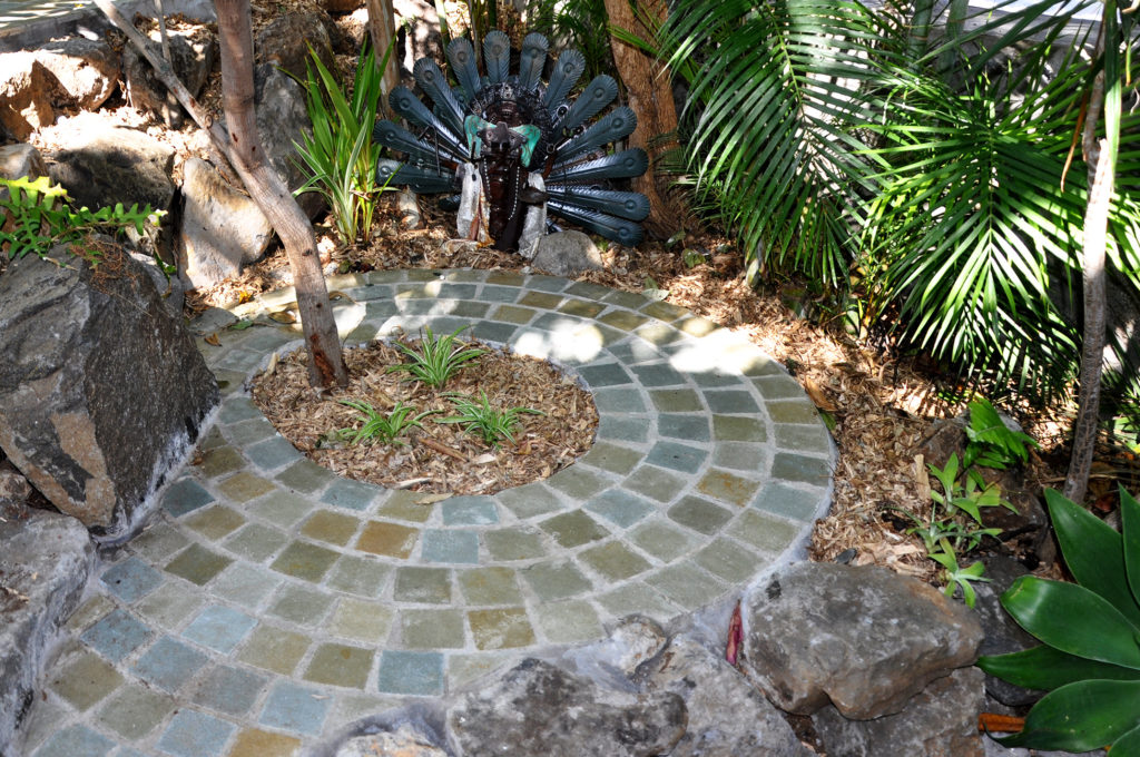 - 2 œuvres artistiques - Partenaires : L'entreprise Les Arts Verts a réalisé l'ensemble du calpinage des pavés et du dallage en pierres avec l'escalier en rocher intégré.